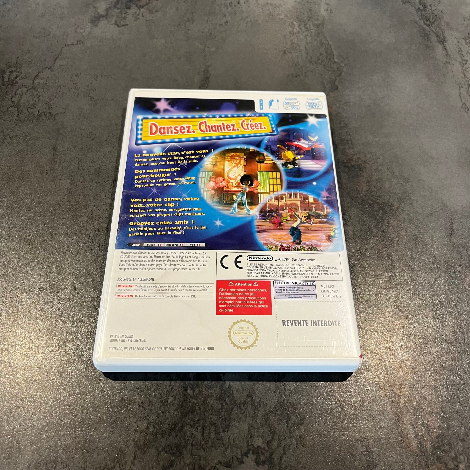 Boogie sur Wii, c’est le combo parfait danse + karaoké pour mettre de l’ambiance dans le salon ! Choisis ton personnage, chauffe tes pas et fais monter la fête avec des chorés délirantes et des performances chantées façon soirée entre potes. Un jeu fun, coloré, idéal pour les fans de party-games.